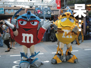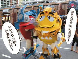這次來的是紅色扮成柯博文和黃色扮成大黃蜂的 M&M,沒有藍色扮成密卡登的 M&M 真是有點小失望,