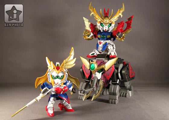 組裝完成後共有三架,分別是孟獲Gundam、祝融Gundam和大象座騎「金剛夜迦」( 這名字取得真是 ... 屌 ),